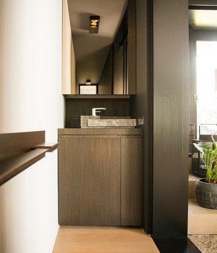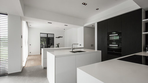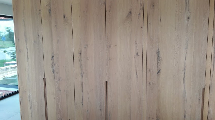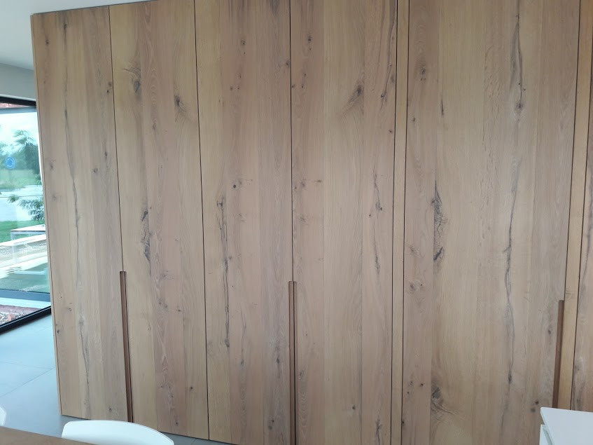 “Ik werk al 20 jaar samen met Dimec, George en ik kennen elkaar dus al een tijdje. Wat ik aan de mensen bij Dimec het meeste apprecieer, is dat ze meezoeken naar oplossingen. Als architecten maken wij een keuze uit hun zeer ruime assortiment. Het is een ervaring én een plezier om door hun magnifieke stalenboek te gaan. In onze projecten gebruiken we veel verschillende soorten fineer, zoals bijvoorbeeld Noce Canaletto, Europese bruine eik en Amerikaanse notelaar. Eik komt wat minder voor in ons werk. Maar alle fineerhout is knap, we laten het mooi passen in de totaalsfeer van het interieur,”
